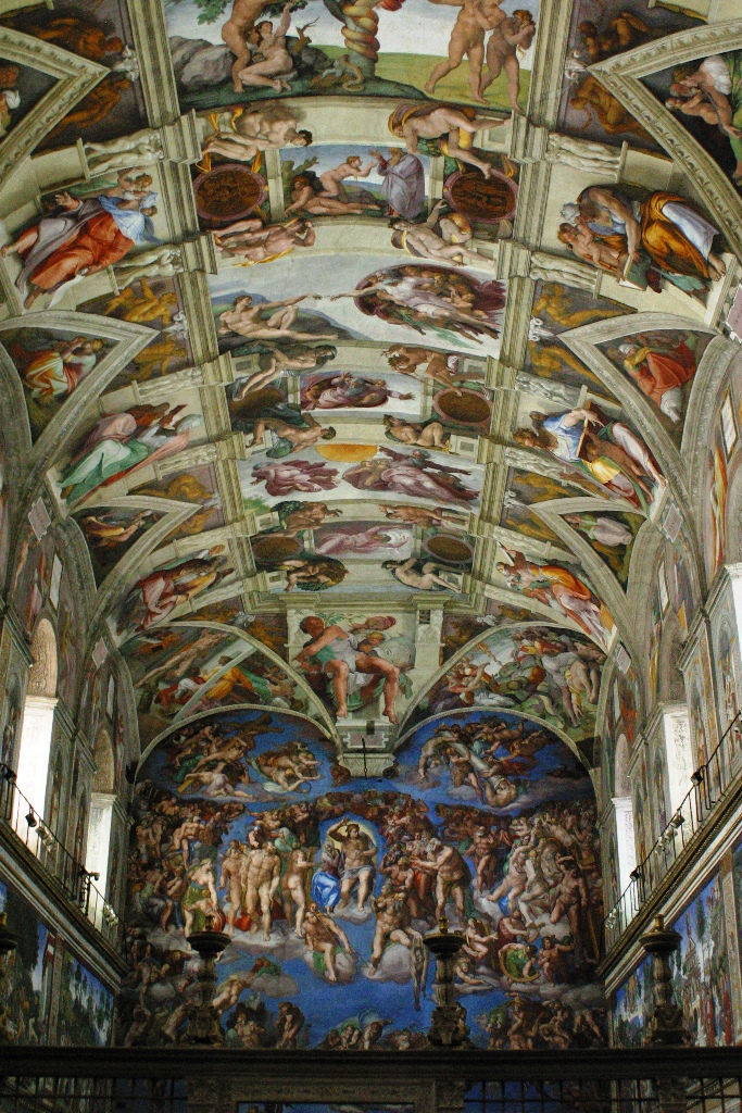 The photo here shows it today – following the restoration that was completed from 1980-1994. (It’s interesting that it took 14 years to complete the restoration, but only 4 years for Michelangelo to create it!)